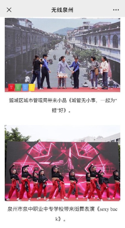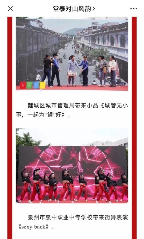 泉州市(shì)明(míng)新中學黨支部由吳聰鵬副書(shū)記帶領師(shī)生(shēng),走進常泰街(jiē)道(dào)新塘社區(qū),參加讓世界看(kàn)見(jiàn)中國(guó)鄉(xiāng)村(cūn)(社區(qū))&·走進常泰新塘——2023泉州“村(cūn)晚”示範展示活動。我校(xiào)流行(xíng)舞(wǔ)社團成員(yuá n)參與表演,節目精彩受到(dào)主辦方及鄉(xiāng)民(mín)們一(yī)緻好(hǎo)評,對(duì)我校(xiào)的(de)辦學特色,以及學生(shēng)的(de)精ε神面貌贊賞有(yǒu)加。