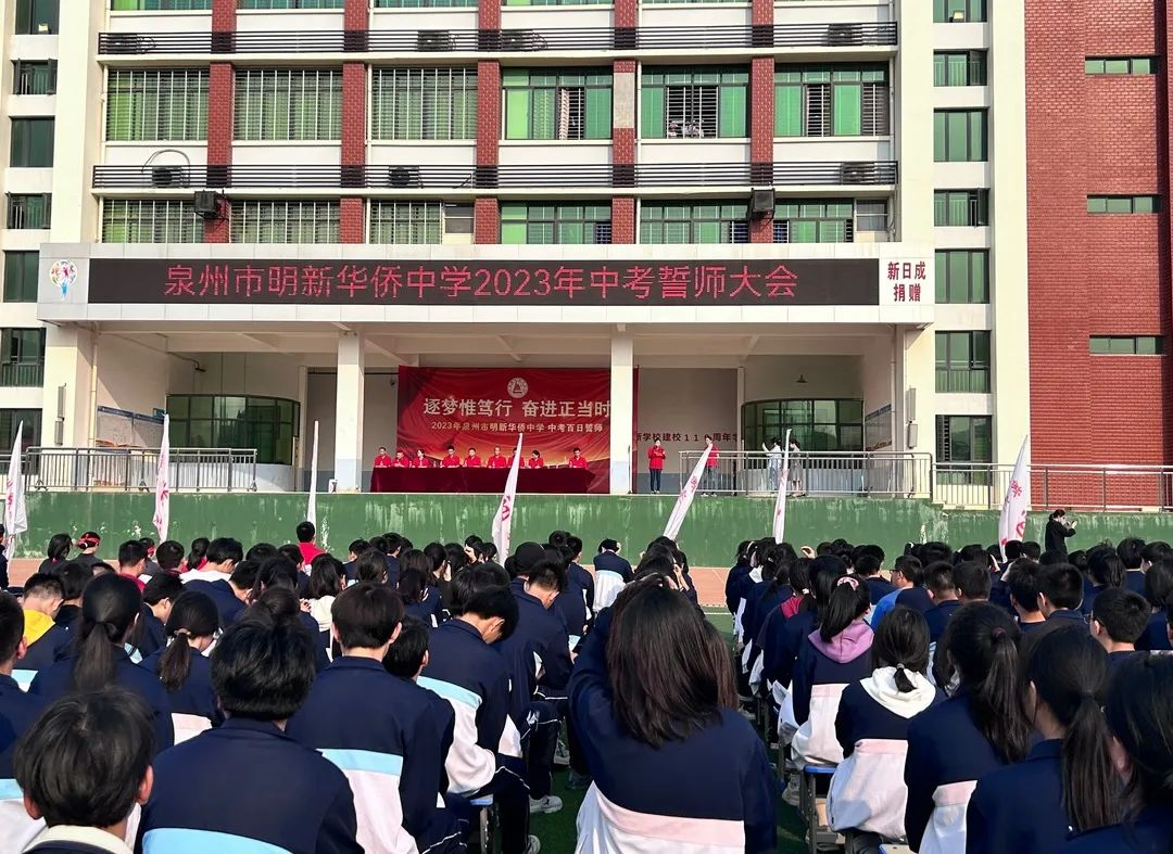 為(wèi)充分(fēn)調動全體(tǐ)初三年(nián)級師(shī)生(shēng)的(de)工(gōng)作(zuò)、學習(xí)積極&性,進一(yī)步激發師(shī)生(shēng)的(de)工(gōng)作(zuò)、學習(xí)熱(rè)情,更好(hǎo)地(dì)備戰中考,為(wèi)學生(shēn"g)進入最後階段的(de)學習(xí)奠定良好(hǎo)的(de)基礎,争取2023年(nián)中考創造輝煌™,我校(xiào)于2023年(nián)3月(yuè)22日(rì)下(xià)午開(kāi)展了(le)“百日(rì)誓師(shī)”活動。