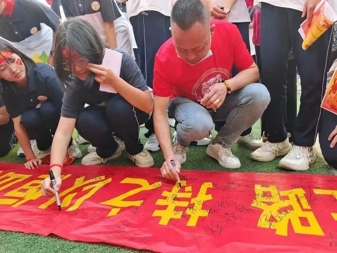 逐夢的(de)初三年(nián)學子(zǐ)們将班級的(de)中考誓言鄭重地(dì)遞交給校(xiào)長(cháng)。身(shēn)≈著(zhe)紅(hóng)火(huǒ)的(de)老(lǎo)師(shī)家(jiā)長(cháng)們築起一(yī)條“祝願長(cháng)廊”,為(wèi)宣誓完畢的(de)學子(zǐ)們擊掌傳遞美(měi)好(hǎo)祝願與力量!