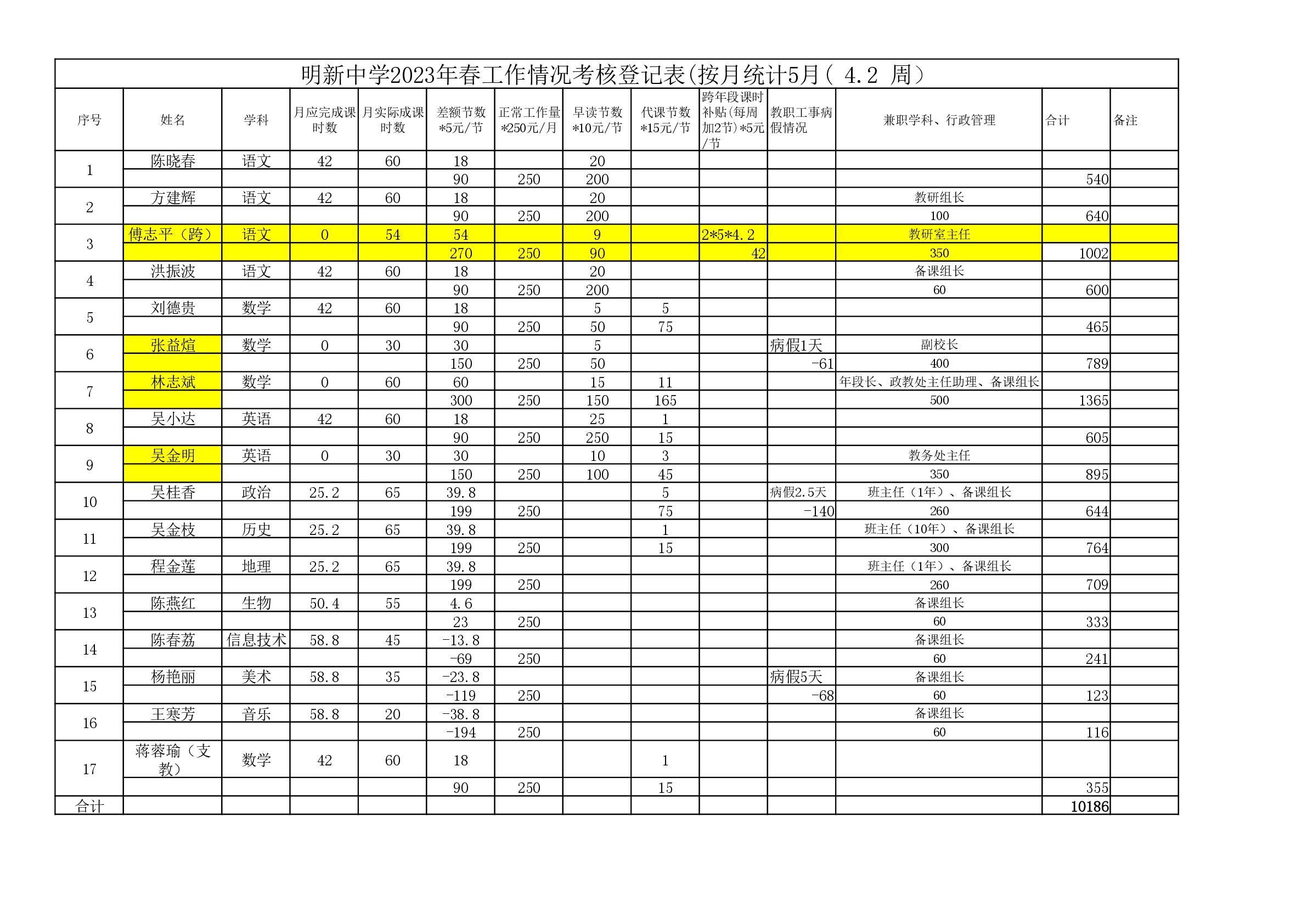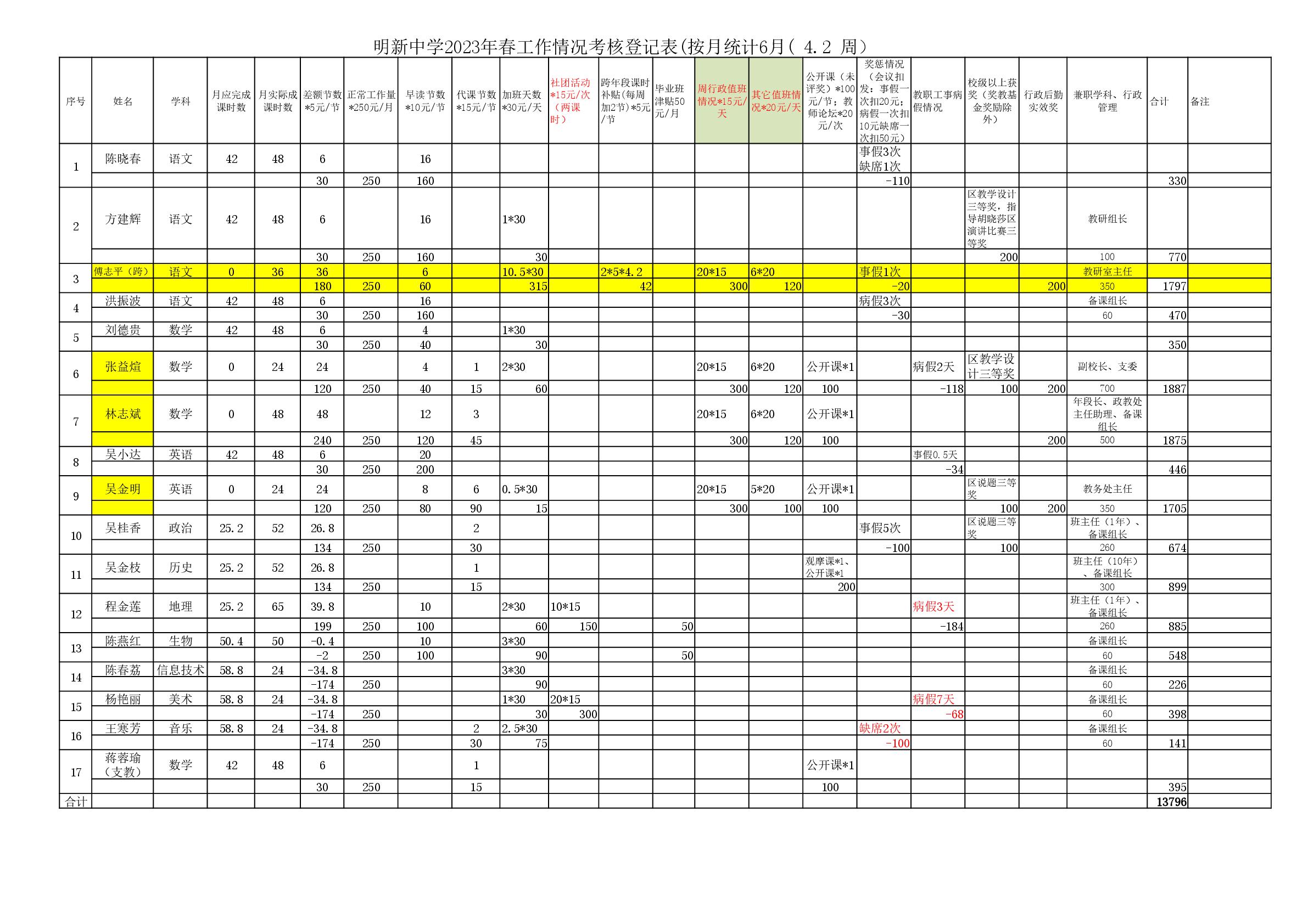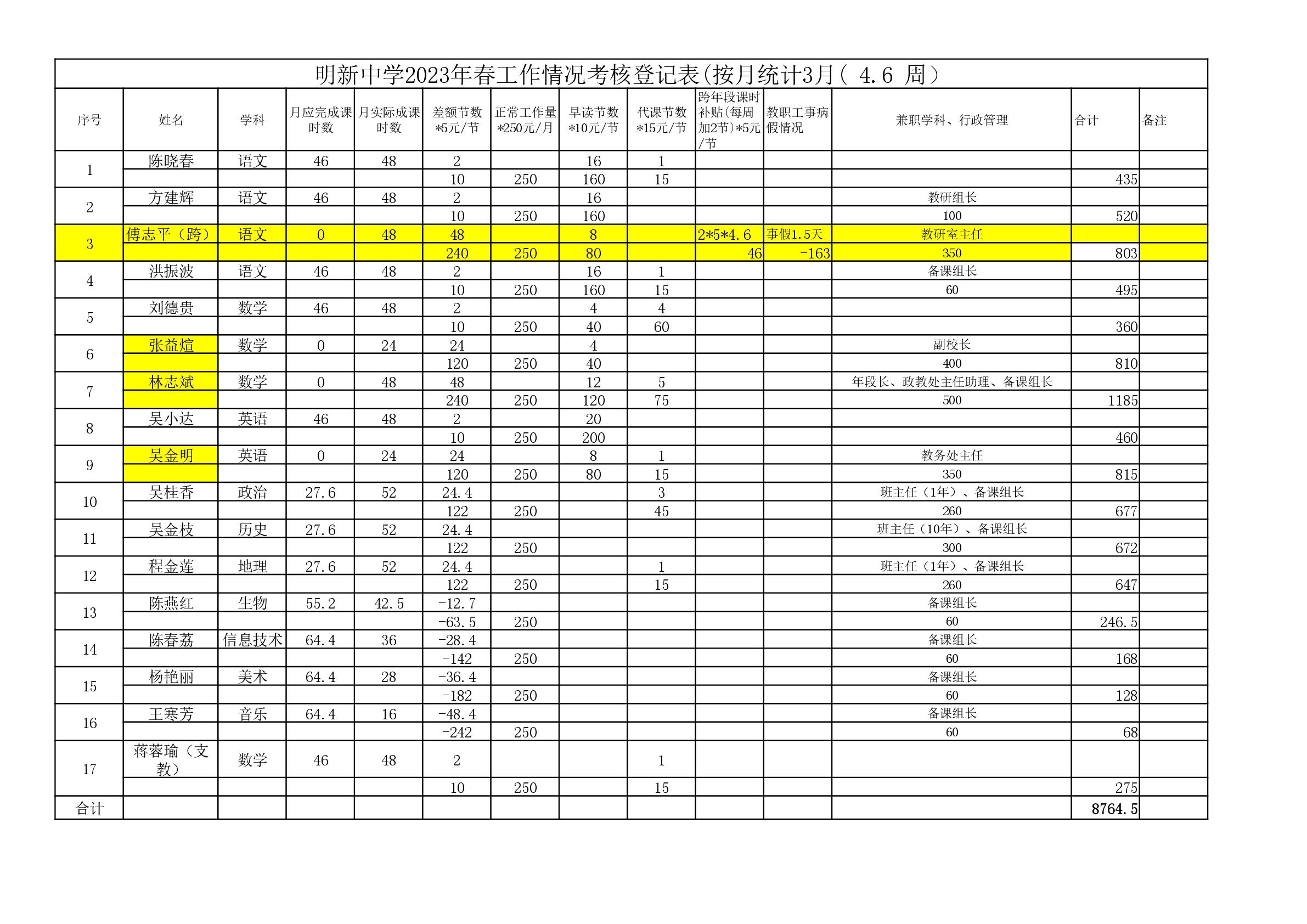 2023春在編教師(shī)八年(nián)級績效統計(jì)表1-6月(yuè)