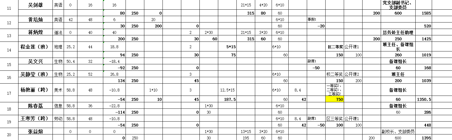 明(míng)新中學2023年(nián)秋工(gōng)作(zuò)情況考核登記表(按月(yuè)統計(jì)11月(yuè)( 4.4 周)