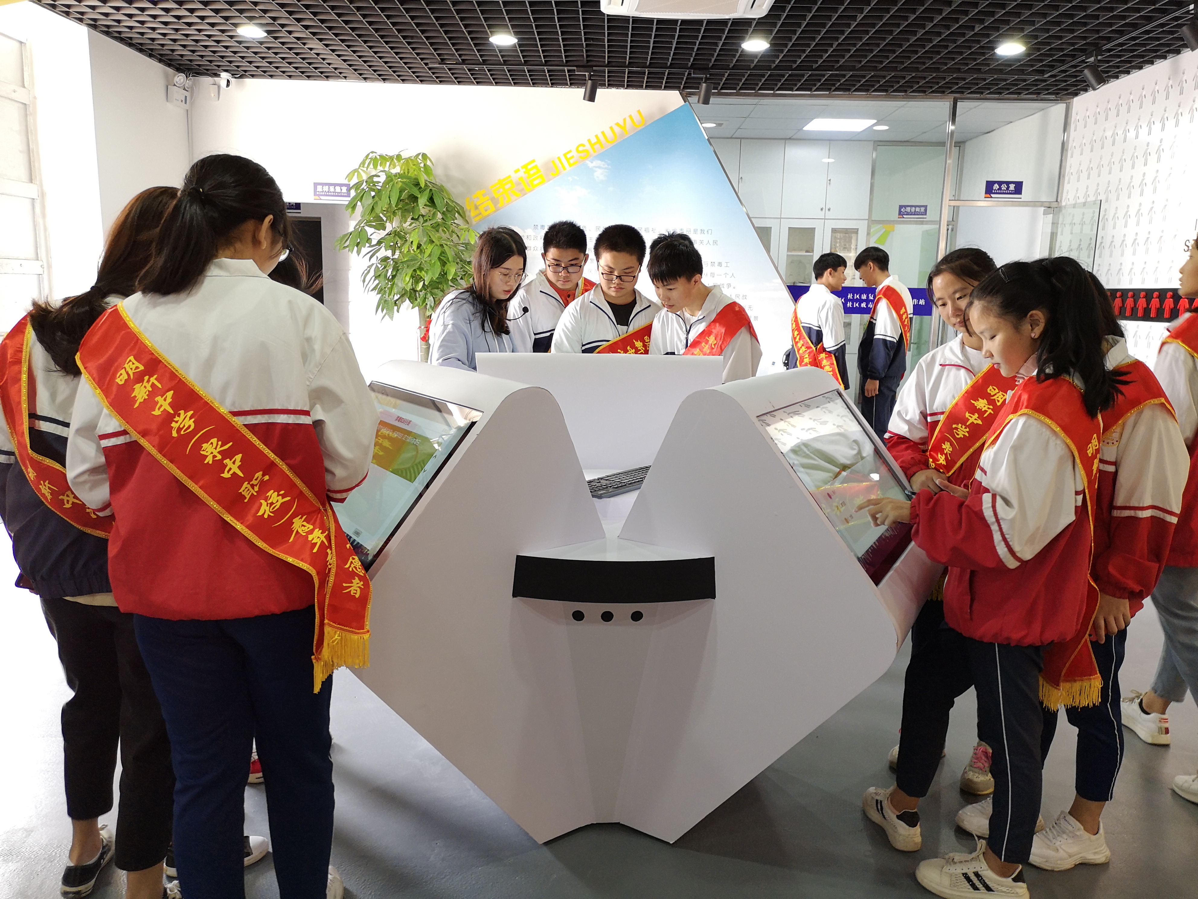 基地(dì)講解員(yuán)詳細介紹了(le)禁毒基地(dì)的(de)建立情況和(hé)毒品知(zhī)識,志(zhì)願者們在參觀中認真聽(tīng)取講解,認真觀察。展廳除了(le)豐富翔實的(de)文(wén)字、圖片、仿真實物(wù),還(hái)設置了(le)互動區(qū),包括VR體(tǐ)驗、AR場(chǎng)景互動、禁毒智能(néng)互動機(jī)器(qì)人(rén)以及互動答(dá)題等,讓全體(©tǐ)同學參與到(dào)禁毒活動中來(lái),充分(fēn)了(le)解毒品,認識毒品的(de)危害性。
