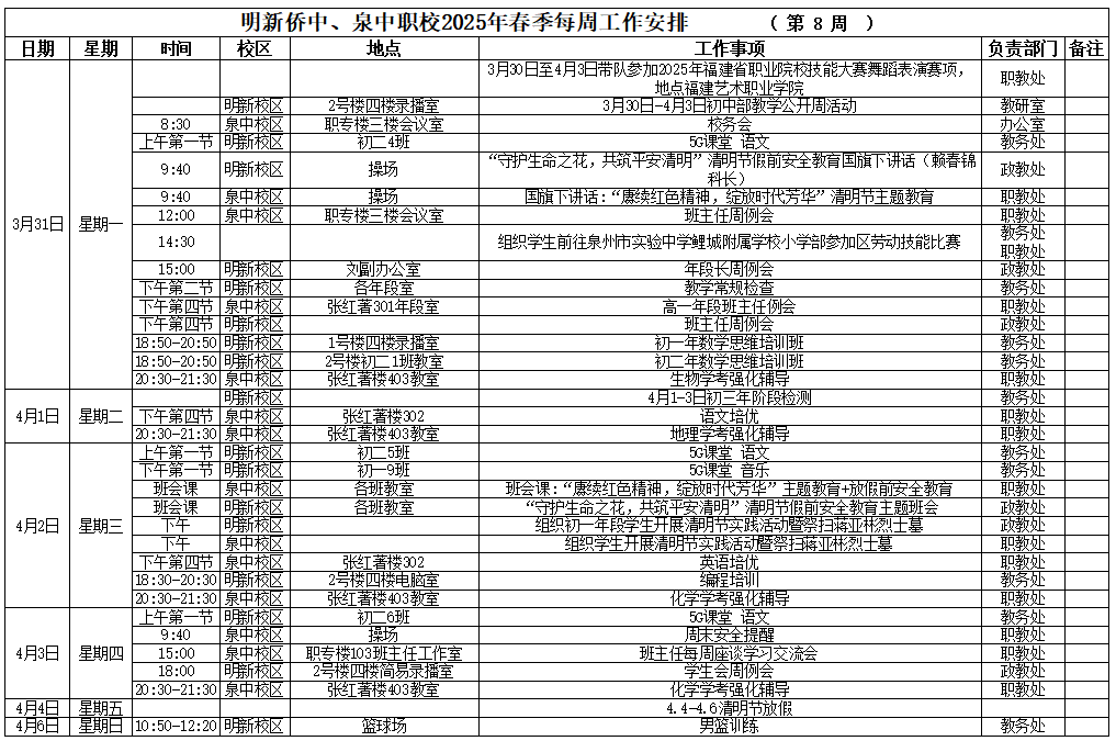 【03月(yuè)31日(rì) 星期一(yī)】 2025年(nián)春季第8周工(gōng)作(zuò)安排