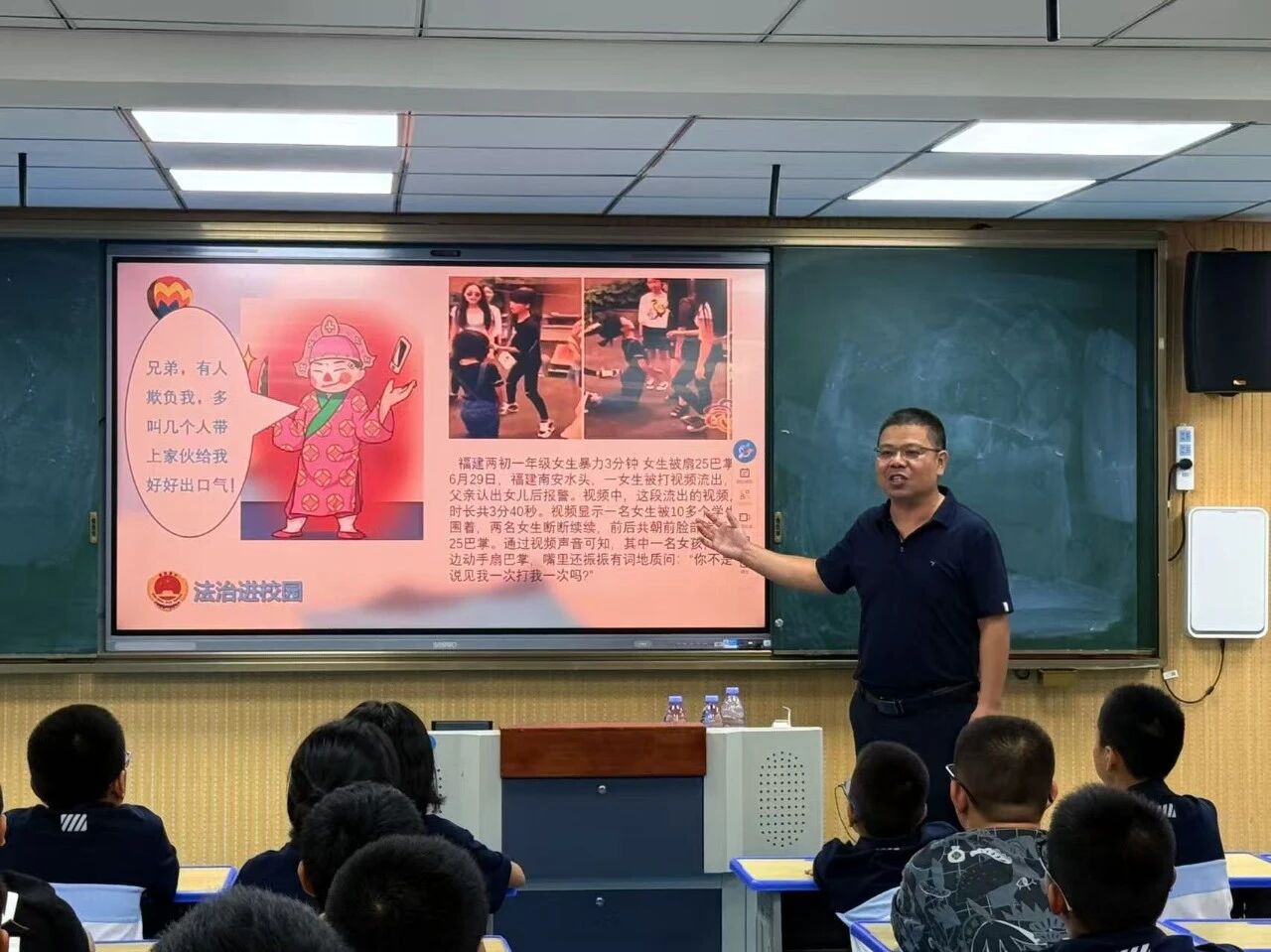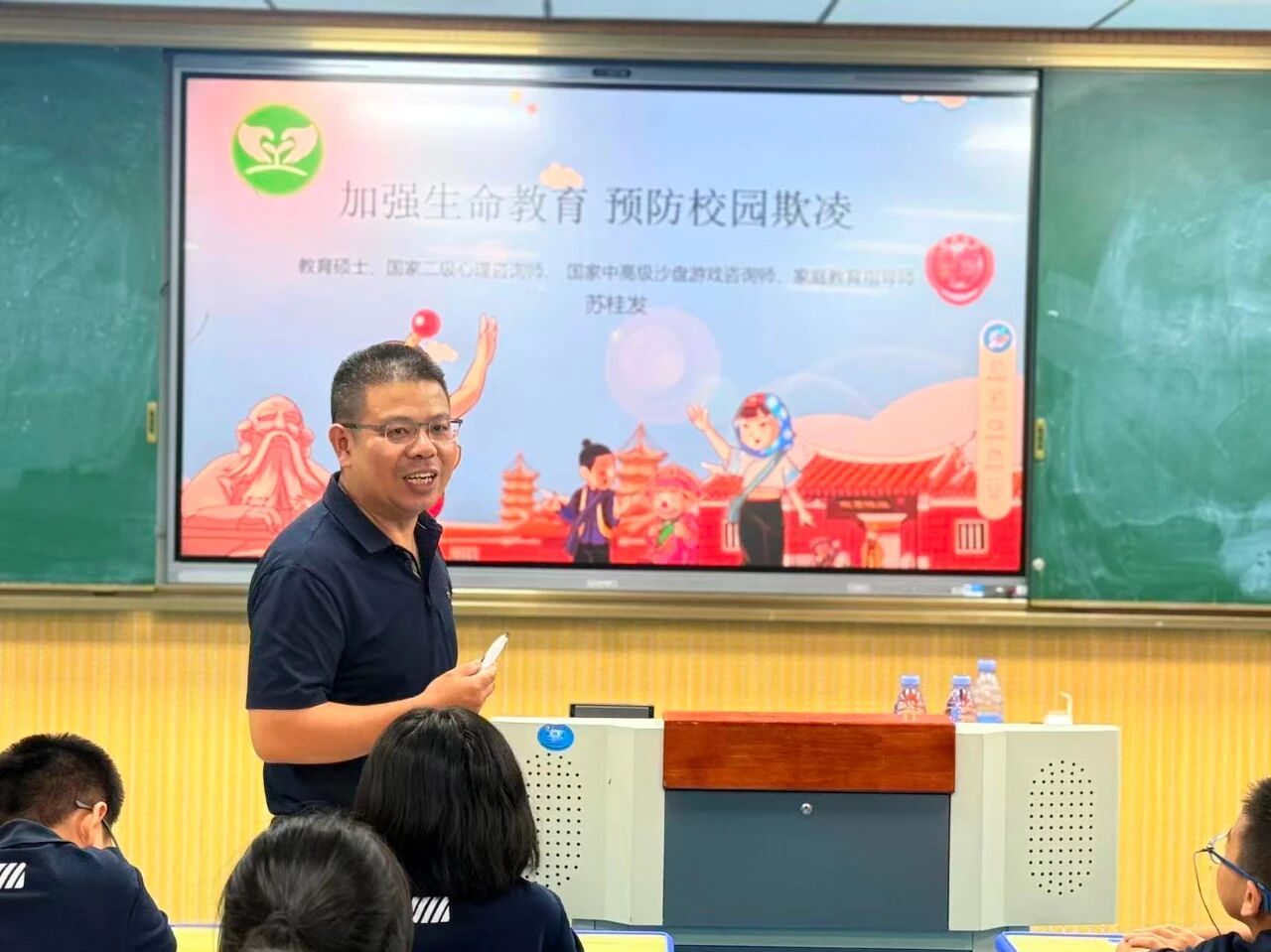 為(wèi)進一(yī)步築牢校(xiào)園安全防線,增強學生(shēng)的(de)法治觀念與自(zì)我保護能(néng)力,有(yǒu)效預防'和(hé)抵制(zhì)校(xiào)園欺淩現(xiàn)象,營造健康和(hé)諧、積極向上(shàng)的(de)育人(rén)環境,9δ月(yuè)17日(rì),國(guó)家(jiā)二級心理(lǐ)咨詢師(shī)、 教育碩士、國(guó)家(jiā)中高(gāo)級沙 盤遊戲咨詢師(shī)、家(jiā)庭教育指導師(shī)蘇桂發走進明(míng)新中學,為(wèi)同學們帶來(lái)了(le)一(yī)場(chǎng)生(shēng)動而深刻的(de)“同"沐陽光(guāng),拒絕欺淩”法治教育專題講座。