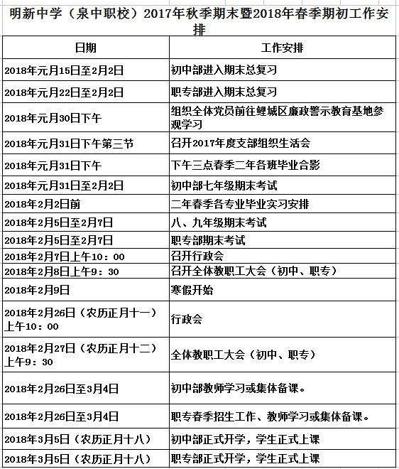 關于2017年(nián)秋季期末暨2018年(nián)春季期初工(gōng)作(zuò)安排的(de)通(tōng)知(zhī)