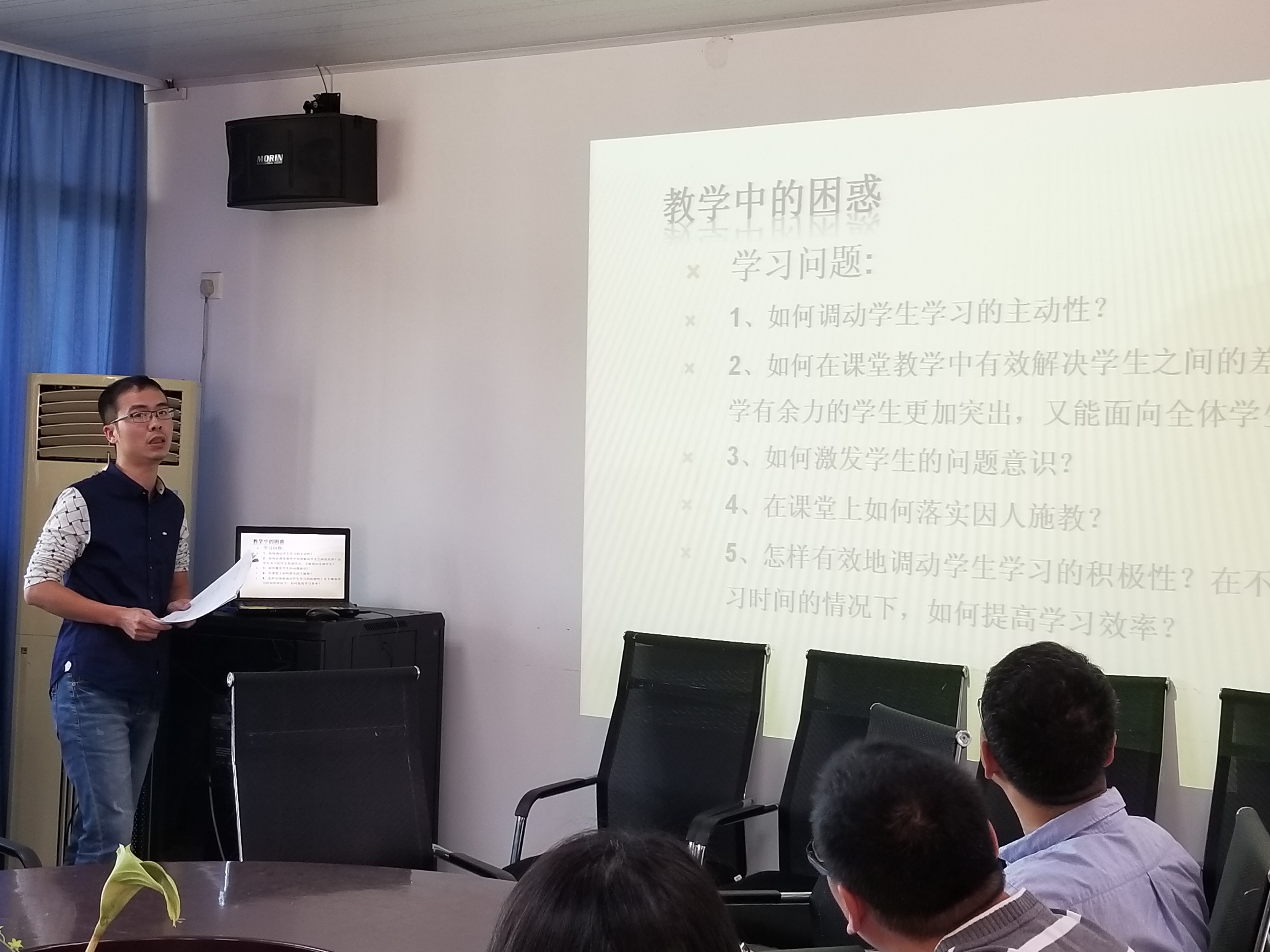 青年(nián)骨幹教師(shī)林(lín)志(zhì)斌老(lǎo)師(shī)做(zuò)了(le)《"教學主張和(hé)教學設計(jì)構想例談》的(de)主題發言。闡述了(le)教學實踐中課堂教學的(de)幾點思考、<個(gè)人(rén)關于感悟數(shù)學的(de)教學主張,并以教學實例分(fēn)析如(rú)何開(kāi)展有(yǒu)主張的(de)教學實踐活動。