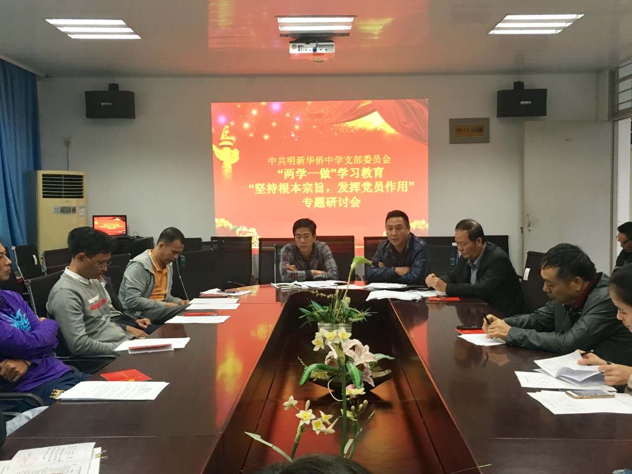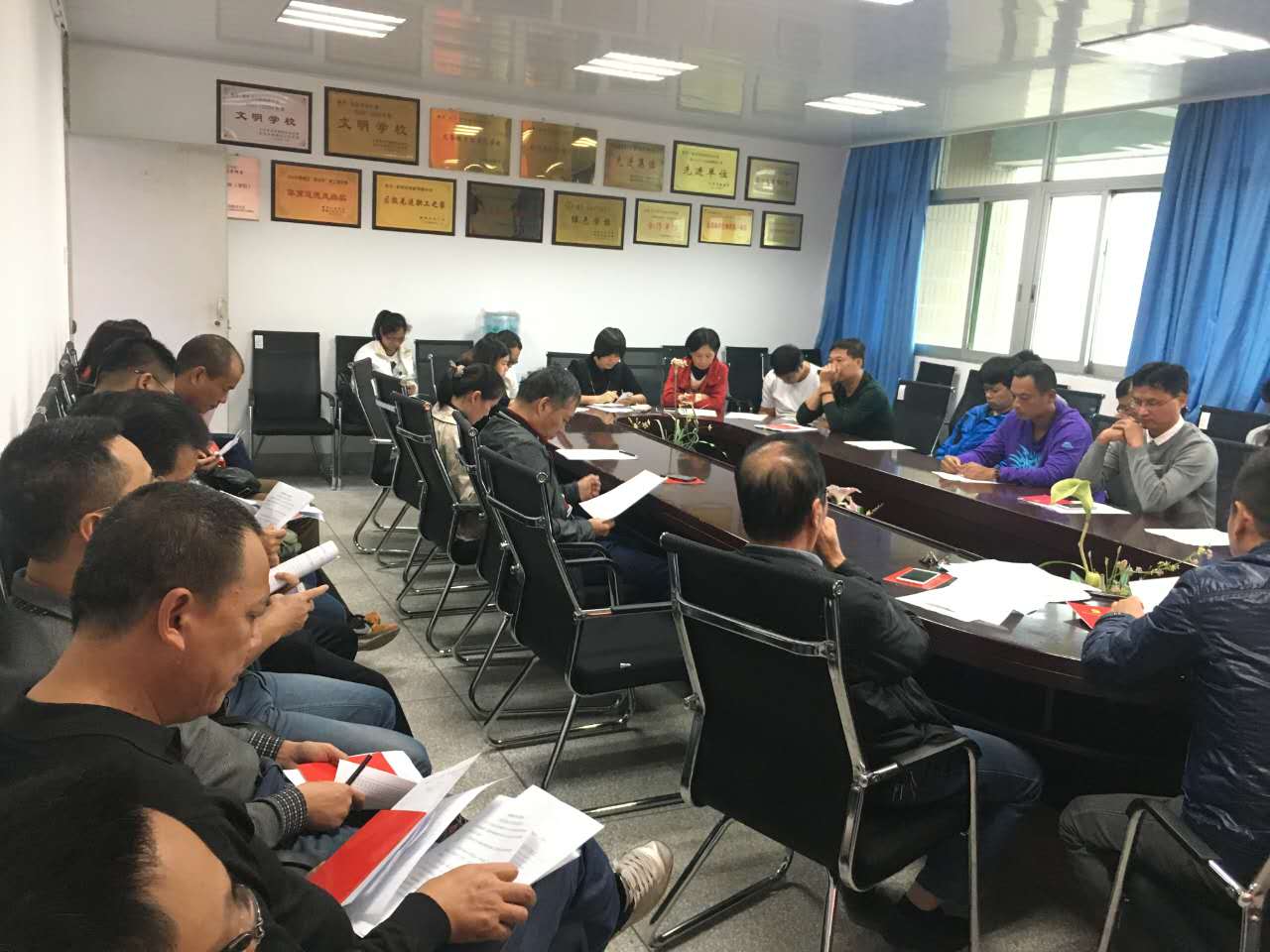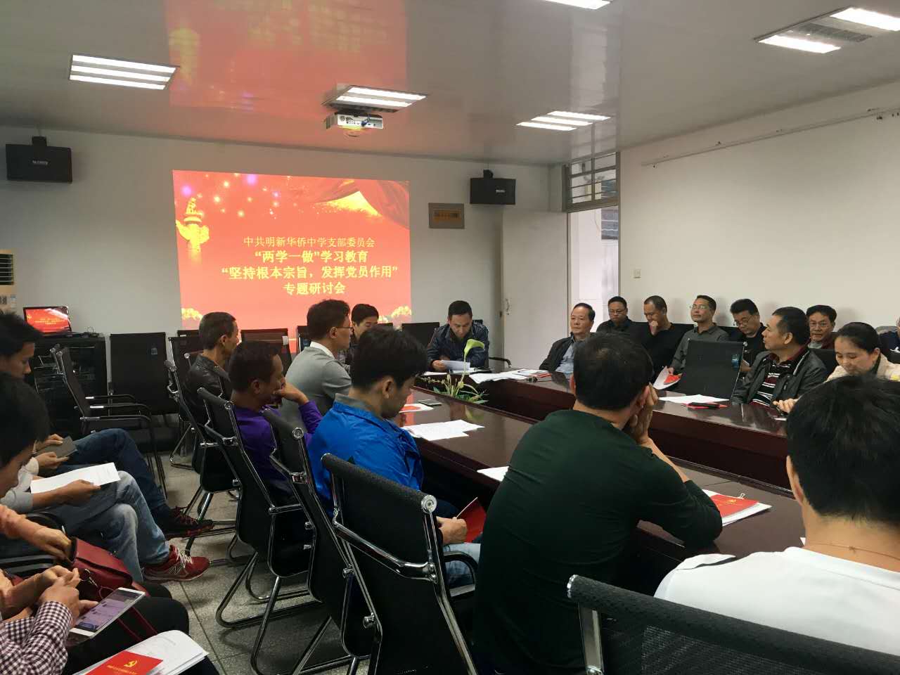 11月(yuè)23日(rì)下(xià)午,泉州中遠學校黨支部組織召開(kāi)“兩學一(yī)做(zuò)”第三專題“堅持根本宗旨,發揮黨員(yuán)作(zuò)用(yòng)”學習(xí)研討(tǎo)會(huì)。會(huì)議(yì)由黨支部副書(shū)記、校(xiào)長(cháng)張上(shàng)建同志§(zhì)主持,全體(tǐ)黨員(yuán)、入黨積極分(fēn)子(zǐ)參加。