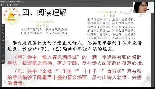 蔣老(lǎo)師(shī)通(tōng)過《中考古詩詞複習(xí)——李白(bái)專題》,從(cóng)同人(rén)異質角度對(duì)初中階段李白(bái)的(de)六首詩進行(xíng)回顧。她(tā)側重學生(shēng↓)對(duì)基礎知(zhī)識的(de)掌握,用(yòng)講練結合的(de)方法,将課堂的(de)主動權還(hái)給學生(shēng)。β