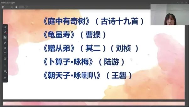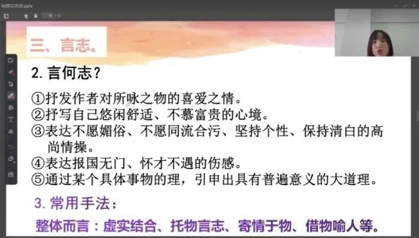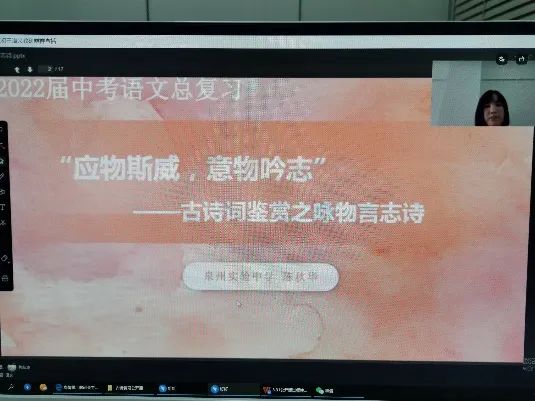 陳秋華老(lǎo)師(shī)通(tōng)過《“應物(wù)斯威,意物(wù)詠志(zhì)”——古詩詞鑒賞之詠物(wù)言志(zhì)詩》這(zhè)節複習(xí)課,從(cóng)相(xiàng)同手法角度對(duì)初中₽階段的(de)五首詠物(wù)言志(zhì)詩進行(xíng)梳理(lǐ)複習(xí)。陳老(lǎo)師(shī↑)首先讓學生(shēng)明(míng)确何為(wèi)“詠物(wù)言志(zhì)”,引導學生(shēng)通(tōng)過規Ω律整合學會(huì)分(fēn)析,總結出詠物(wù)言志(zhì)詩賞讀(dú)“物(wù)、志(zhì)、技(jì)”三大 (dà)要(yào)點,提高(gāo)學生(shēng)對(duì)古詩詞的(de)解讀(dú)能(néng)力。