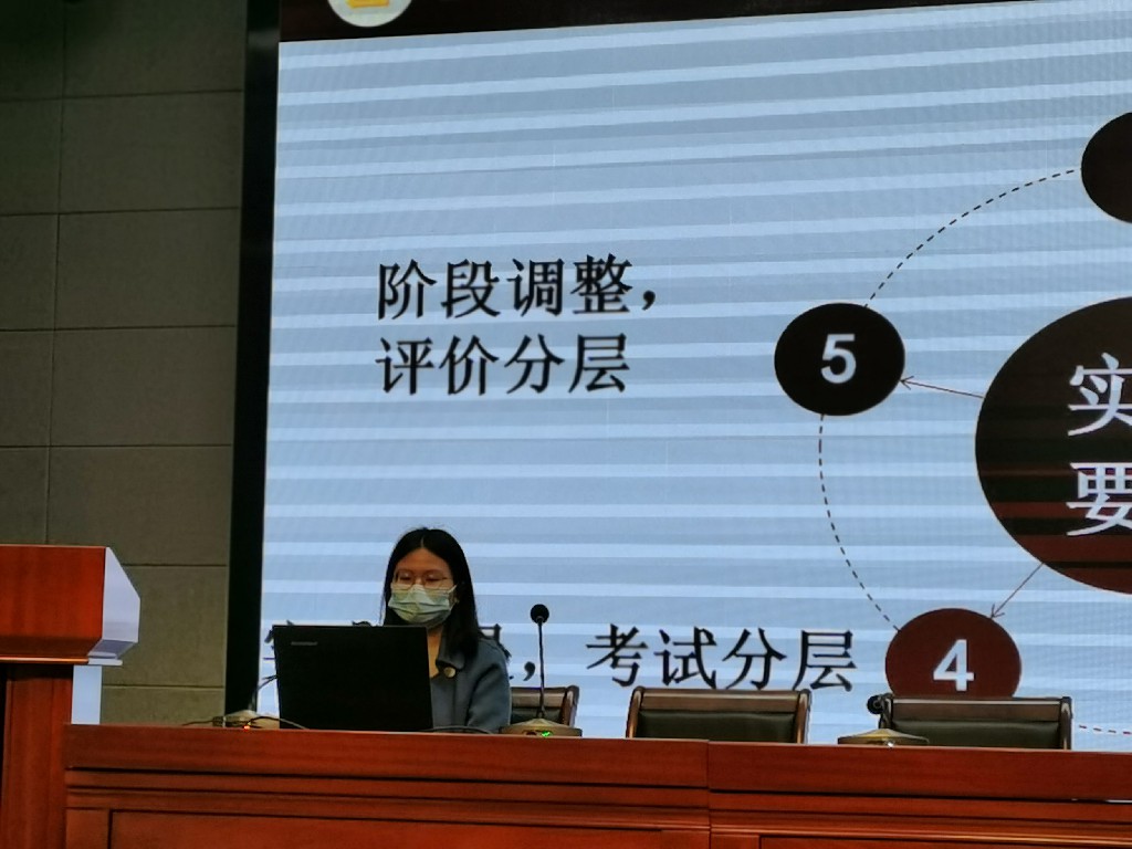 青年(nián)教師(shī)張綿綿老(lǎo)師(shī)在介紹初中地(dì)理(lǐ)分(fēn)層教學的(de)發言中分(fēn)解了(le)分(fēn)層教學各個(gè)階段的(d"e)重點,首先要(yào)了(le)解學生(shēng)差異,針對(duì)差異目标分(fēn)層,讓後再面向全體(tǐ)、實施分(fēn)層,實事(shì≠)求是(shì)、考試分(fēn)層,最後階段調整,評價分(fēn)層,以實現(xiàn)分(fēn)✘層的(de)教學效果。