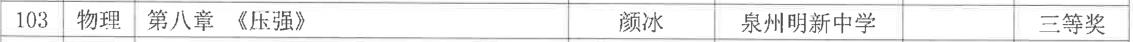 從(cóng)剛剛結束的(de)鯉城(chéng)區(qū)物(wù)理(lǐ)學科(kē)片段教學的(de)賽場ε(chǎng)上(shàng)也(yě)傳來(lái)佳音(yīn),我校(xiào)青年(nián)教師(shī)黃(huáng)思敏獲得(de)了(le)物(wù)理(§lǐ)學科(kē)片段教學比賽一(yī)等獎,并代表鯉城(chéng)區(qū)參加泉州市(shì)教師(shī)技(jì)能(néng)比賽。