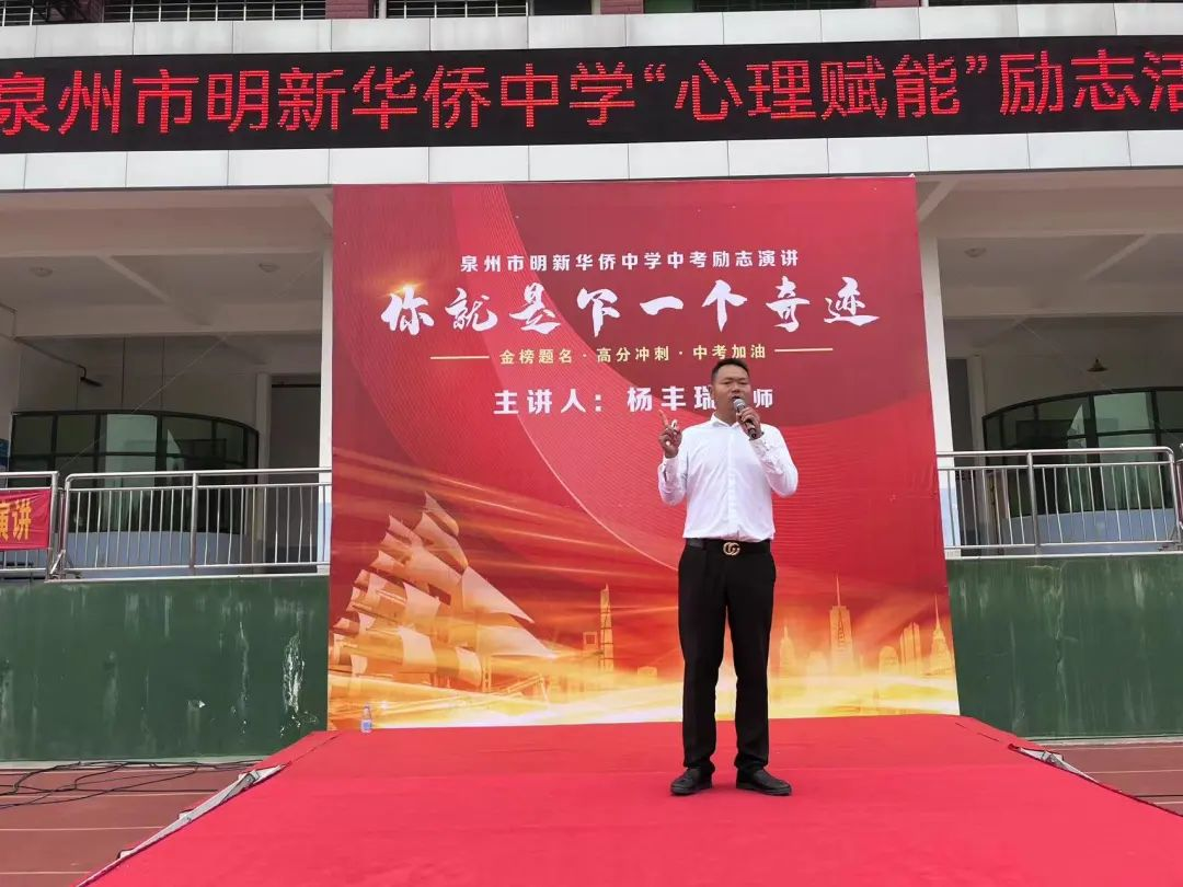 4月(yuè)24日(rì)下(xià)午,我校(xiào)舉行(xíng)“心理(lǐ)賦能(néng)”大(dà)型演講活動。活動由張益煊副校(xiào)長(cháng₽)主持,此次活動邀請(qǐng)了(le)楊豐瑞老(lǎo)師(shī)為(wèi)我們進行(xíng)賦能(n éng)演講。全體(tǐ)初二初三師(shī)生(shēng)齊聚大(dà)操場(chǎng),共同聆聽(tīng)長(cháng)達2個(gè)多(duō)小(xiǎo)時(shí)的(de)直♠擊心靈的(de)演講,活動現(xiàn)場(chǎng)激動而熱(rè)烈。