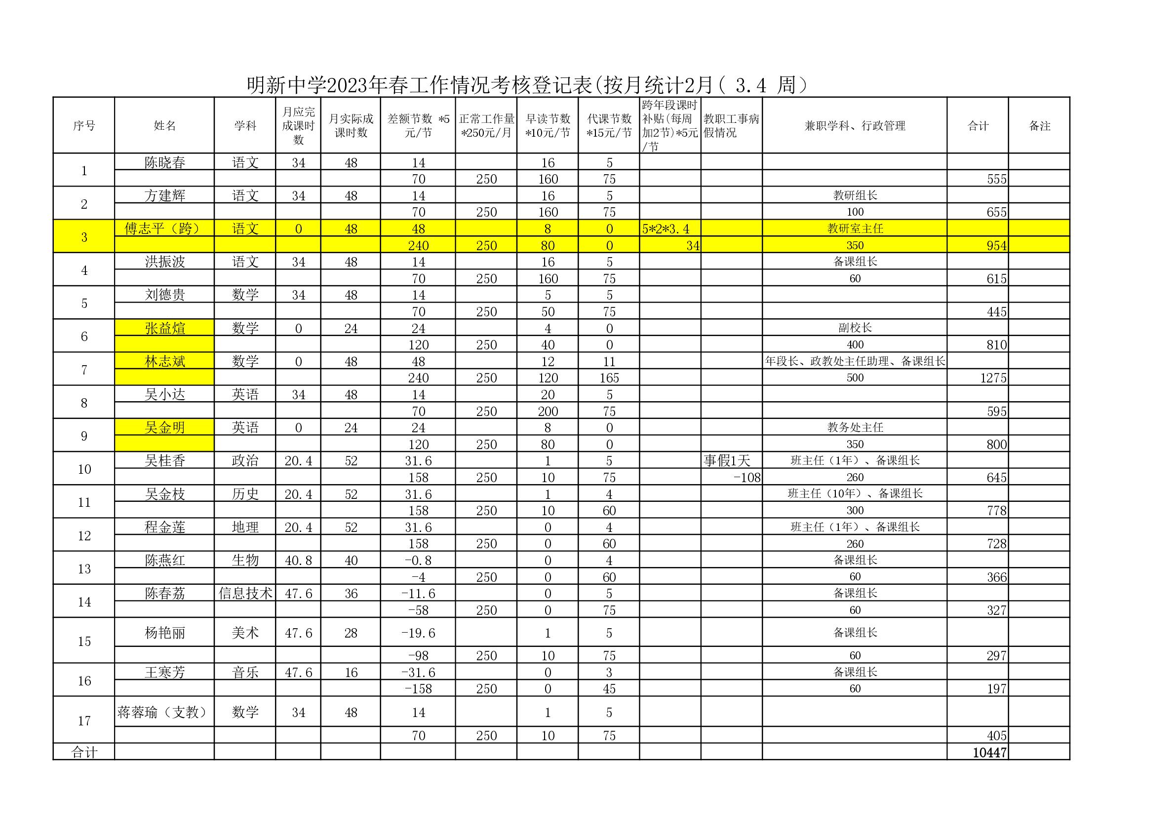 2023春在編教師(shī)八年(nián)級績效統計(jì)表1-6月(yuè)