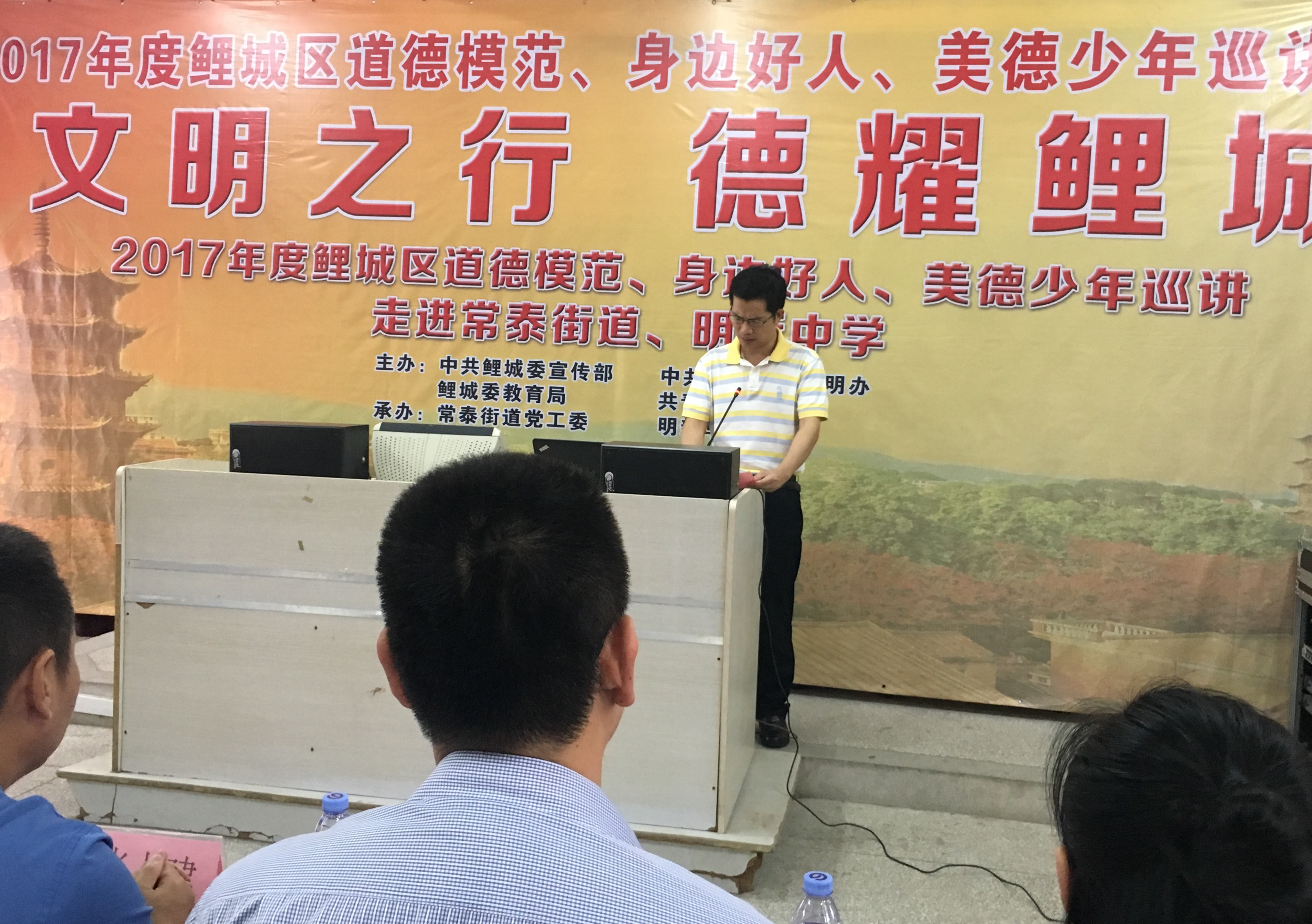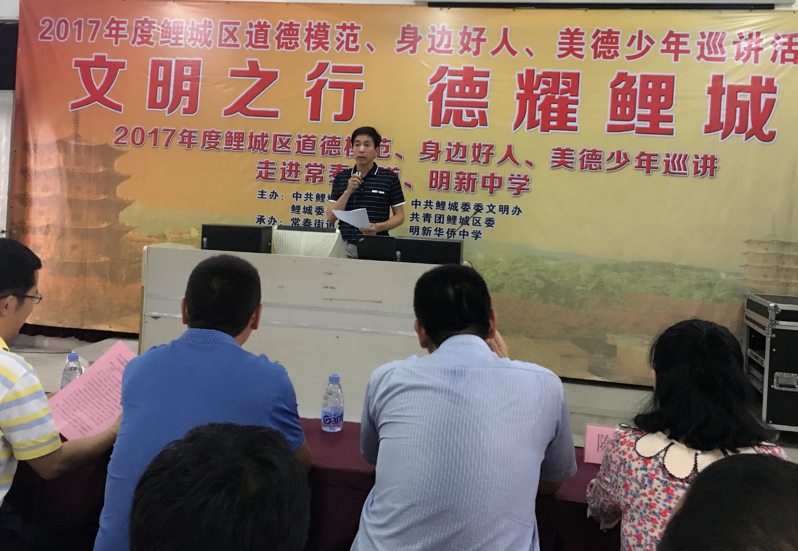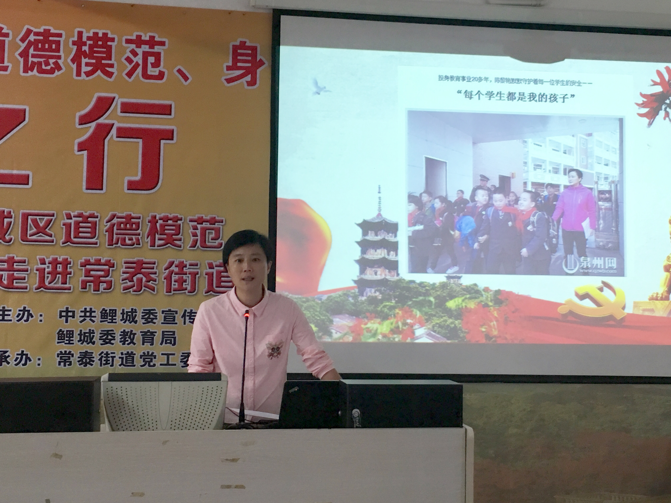 巡講中,第五屆泉州市(shì)“見(jiàn)義勇為(wèi)”道(dào)德模範、泉州市(shì)第二中心小(xiǎo)學副校(xiào)長(cháng)陳黎豔現(xiàn)場(chǎng)分(fēn)享了(le)自(zì)己投身(shēn)教育事(sλhì)業(yè)二十多(duō)年(nián),不(bù)忘初心,用(yòng)愛(ài)護航,擔負學校(xiào)學生(shēng)的(de)安保重任,為(wèi)學生(shē±ng)撐起安全“保護傘”的(de)故事(shì)。