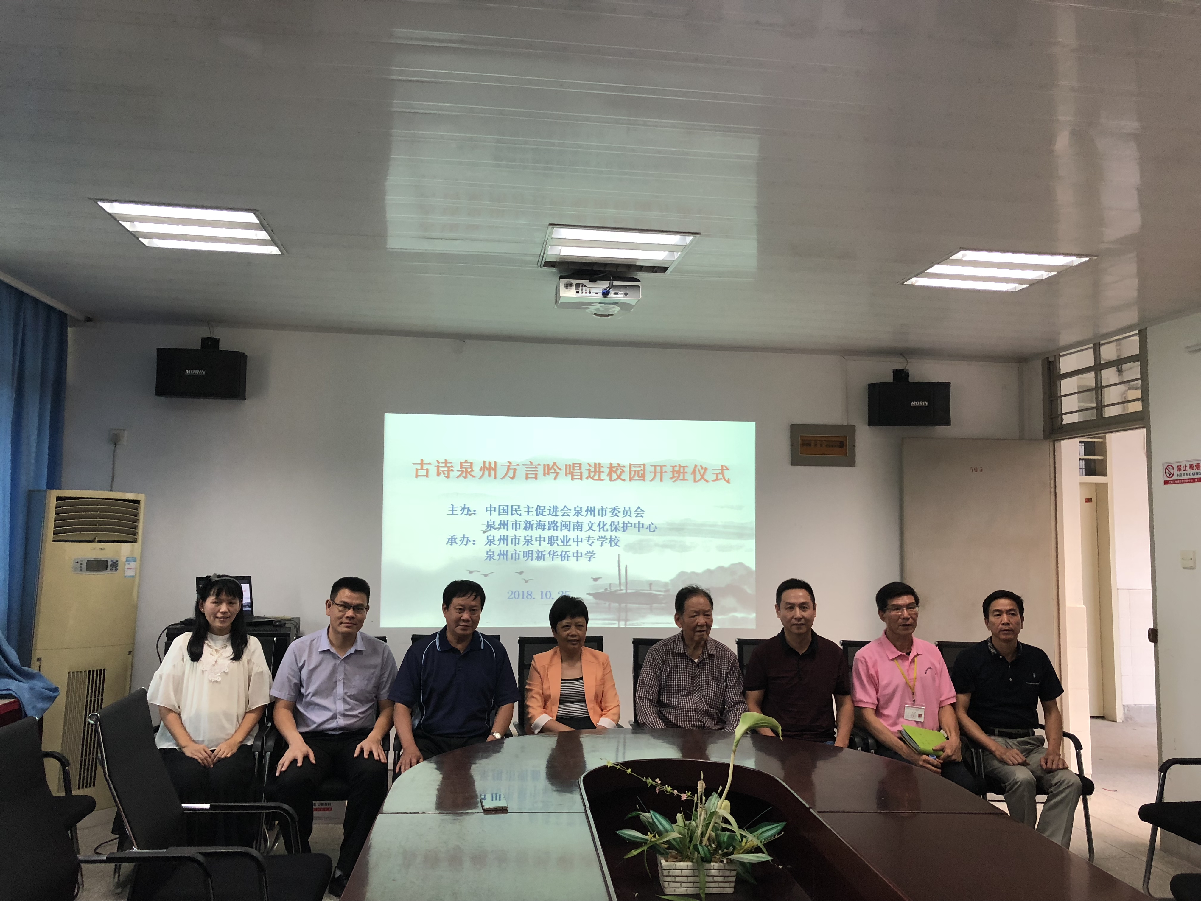 10月(yuè)25日(rì)下(xià)午,由中國(guó)民(mín)主促進會(huì)泉州市(shì)委員(yuán)會(huì),泉州市(shì)新海(hǎi)路(lù)閩南(nán)文(w↑én)化(huà)保護中心主辦,泉州中遠學校,泉州市(shì)泉中職業(yè)中專學校(xiào)承辦的(de)“古詩泉州方言吟唱(chàng)進校(xiào)園開(kāi)×班儀式”,在該校(xiào)正式啓動。