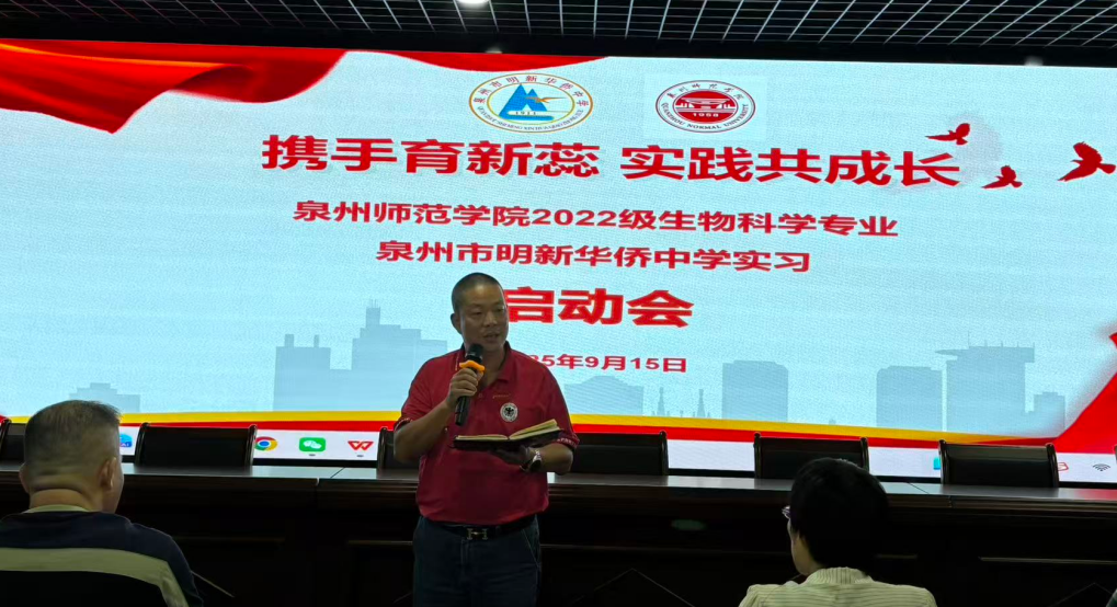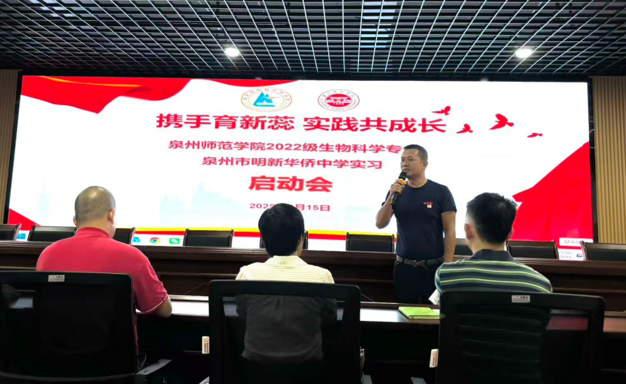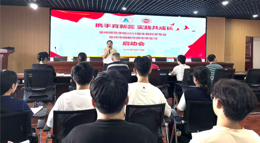 9月(yuè)15日(rì)下(xià)午,我校(xiào)為(wèi)泉州師(shī)範學院2022級生(shēng)物(₹wù)科(kē)學專業(yè)的(de)實習(xí)生(shēng)舉行(xíng)教育實習(xí)啓動會(huì)。本次啓動會(huì)以"攜手育<新蕊,實踐共成長(cháng)"為(wèi)主題,明(míng)新華僑中學副書(shū)記吳劍雄、副校(xiào)長(chán g)吳晉南(nán)、副校(xiào)長(cháng)劉友(yǒu)生(shēng)和(hé)各處室主任、§學科(kē)指導老(lǎo)師(shī)、班主任代表,以及泉州師(shī)院帶隊老(lǎo)師(shī)陳細×香、周明(míng)燦共同參會(huì)。