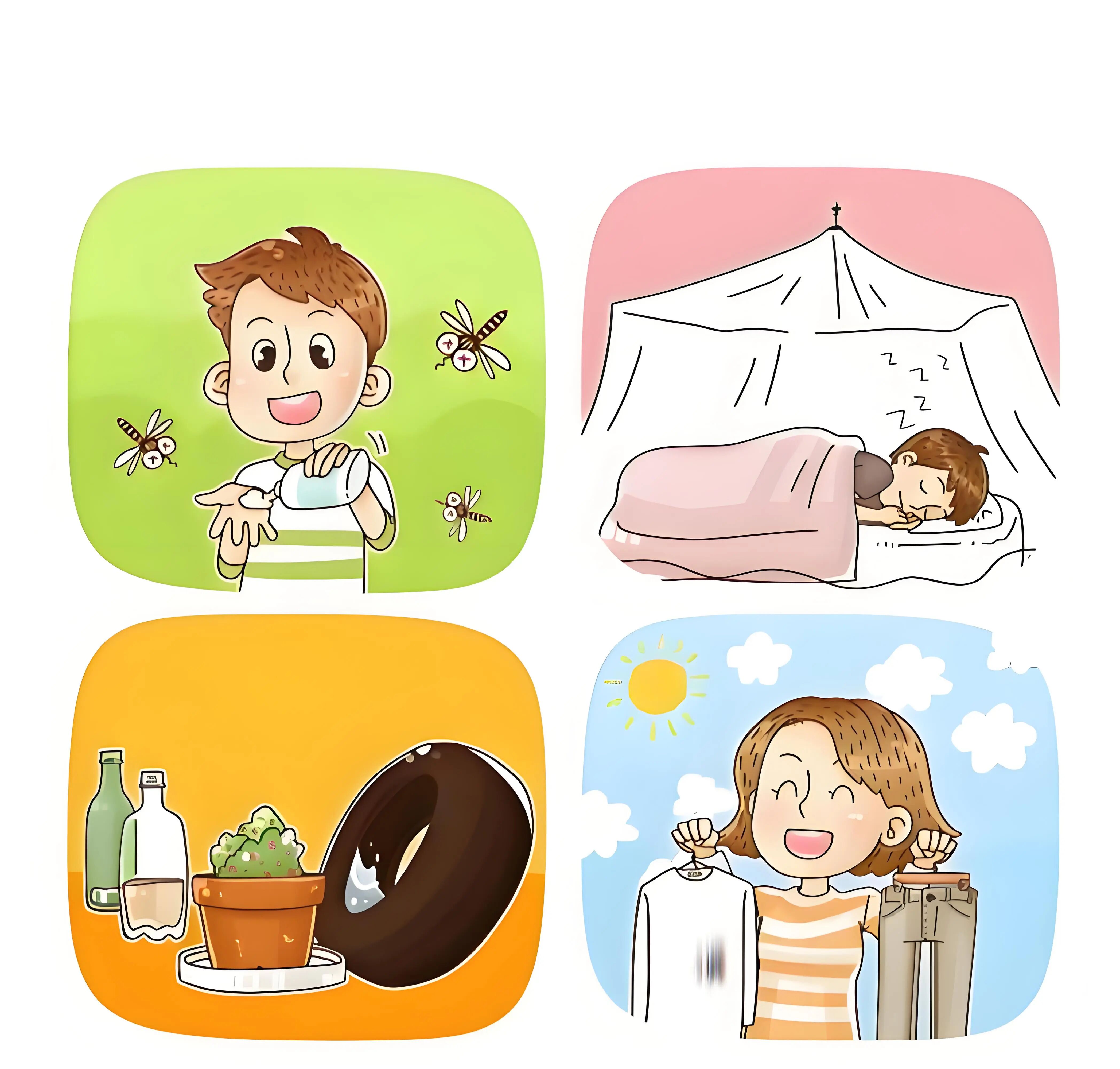 正确使用(yòng)驅蚊産品:驅蚊劑可(kě)塗抹在暴露的(de)皮膚或衣服上(shàng),選擇含有(yǒu)避蚊胺、派卡瑞丁或伊默甯成分(fēn)的(de$)産品,并按照(zhào)說(shuō)明(míng)使用(yòng)。特别注意嬰幼兒(ér)的(de)使用(yòng)限制(zhì),避免過量。