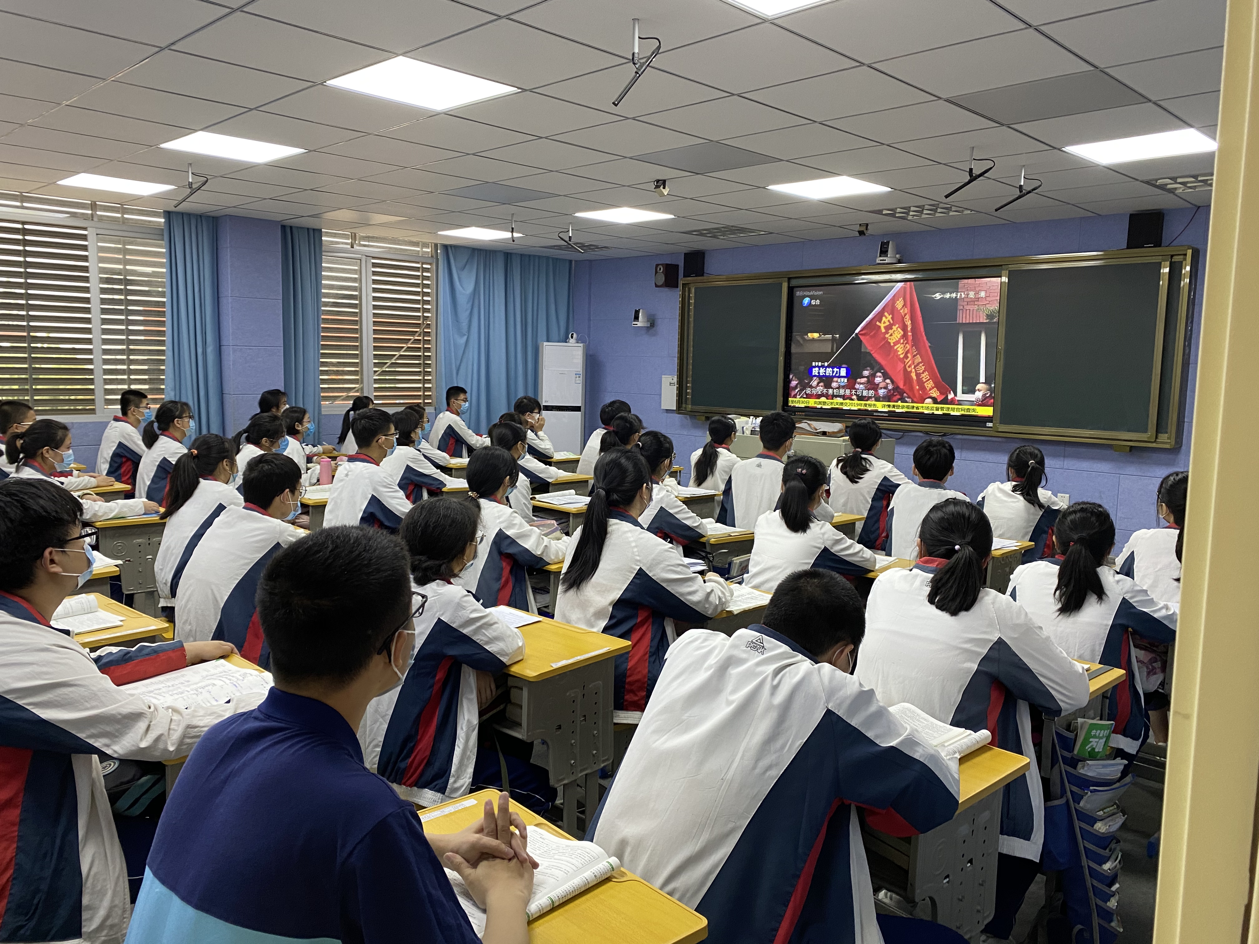 在班級裡(lǐ),開(kāi)學第一(yī)課開(kāi)始。班主任點名晨檢後,播放(fàng)《成長(ch•áng)的(de)力量——複學第一(yī)課》視(shì)頻(pín),進行(xíng)防控知(zhī)識教育、生(shēng)命教育、感恩教育、心理(lǐ)健康知(zhī)識教育和(hé)安全教育。未能(néng)複學的(de)初一(yī)二年(nián)段學生(shēng)在家(jiā)同步觀看(kàn)第一(yī)課視(shì)頻(pín)直播。